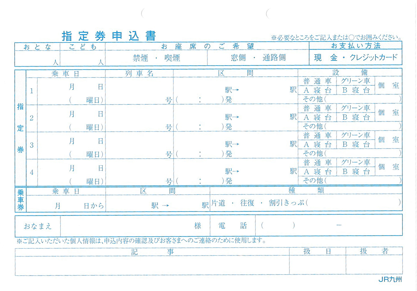 JR東日本とJR九州は通勤定期券と通学定期券では申込用紙が異なっています 。