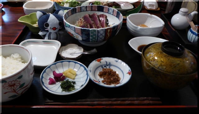 途中、高知市内に立ち寄り鰹のたたきをまず食して腹ごしらえです!