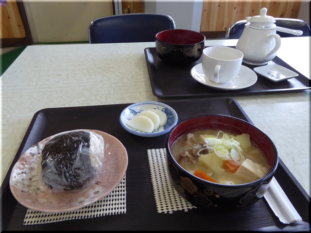 途中、美味しいおにぎりと豚汁、おつけもの、そして、ハーブティーをいただきました。