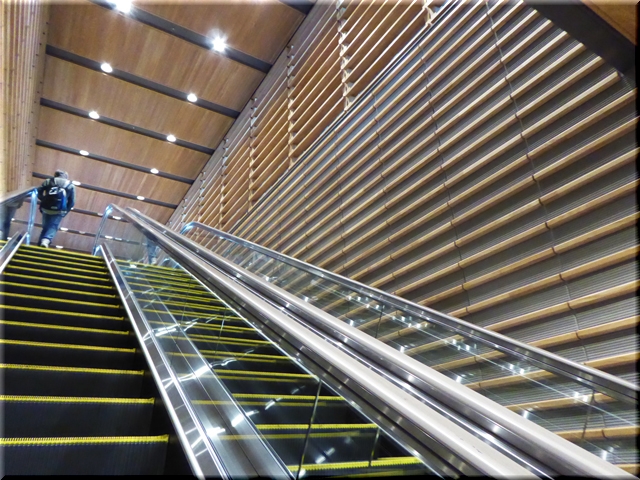ホームへ続くエスカレーターは木材があるおかげか心地よく感じました。