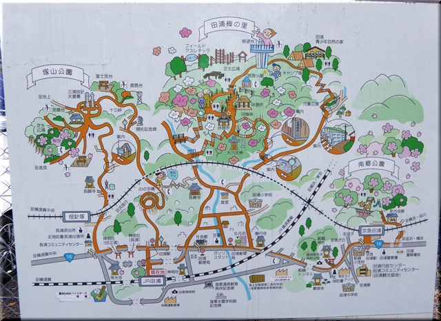 矢印の方角(南口)へ進むと、梅林と周辺の案内図がありました。