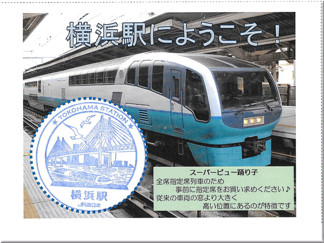 横浜駅に停車しているスーパービュー踊り子号を用いた台紙です。