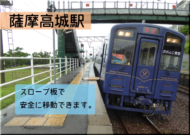 薩摩高城駅はカーブ上に駅があるため、