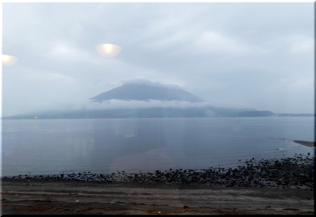 出発後は、霧をまとった桜島を右手に錦江湾の縁を進みます。