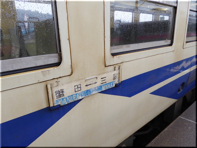 三厩で購入した乗車券で列車に向かうとサボ(行き先が書いてある板)が