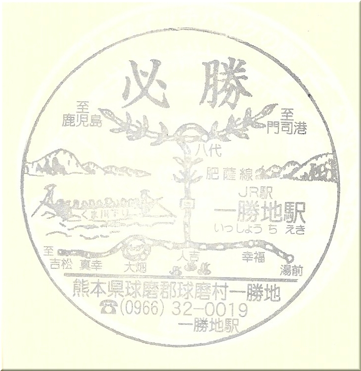 【駅スタンプ】人吉駅・一勝地駅 スタンプ・入場券 2016年10月22日 肥薩線 人吉駅(北緯32度12分59.08秒 東経130度45分14.5秒) くまがわ鉄道湯前線起点駅(駅名は人吉温泉駅)。 日本三大急流の一つである球磨川の『くま川下り』の様子が掘られています。 こちらは伝統工芸品のきじ馬が掘られたスタンプ。 可愛らしいです。 肥薩線 一勝地駅(北緯32度15分0.73秒 東経130度39分8.83秒) 縁起の良い駅名をまっすぐに表現しているスタンプ。 くま川下りの絵も一緒に掘られています。 一勝地駅では平日は必勝お守りが売られているとのことです。 [0回] http://tetsukotabi.iku4.com/%E3%82%B9%E3%82%BF%E3%83%B3%E3%83%97/%E3%80%90%E4%BA%BA%E5%90%89%E9%A7%85%E3%83%BB%E4%B8%80%E5%8B%9D%E5%9C%B0%E9%A7%85%E3%80%91【駅スタンプ】人吉駅・一勝地駅