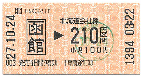 函館から210円の距離にあるJRの駅まで乗れます。
