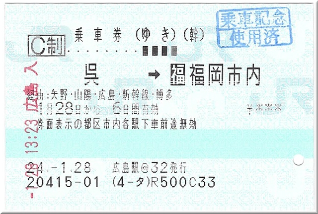 の3種類の乗車券[JR]にのうち 《片道乗車券》についてです。