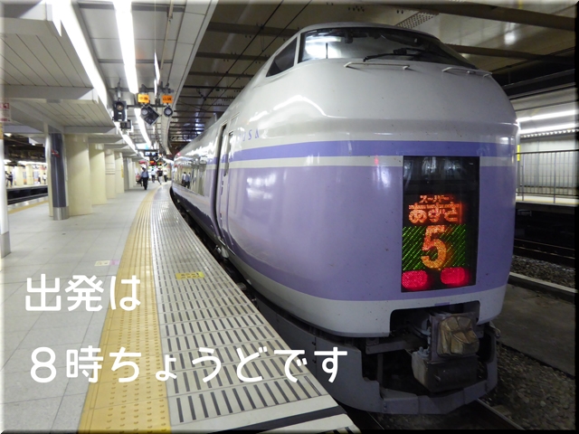 都内(新宿)からは8時ちょ~どの♪・・・スーパーあずさ5号がちょうどいいです。