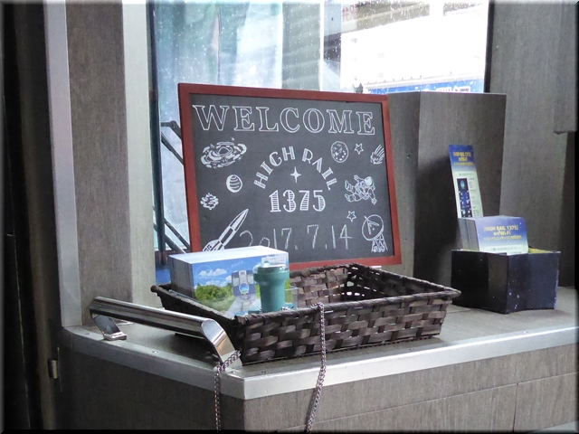 車内に入ると、入って直ぐに日付が入ったブラックボードとスタンプが置いてあります。